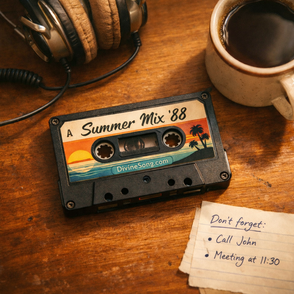 A pack of 2 real cassette tapes with custom artwork and your song recorded on both sides — a retro keepsake to share and treasure forever.