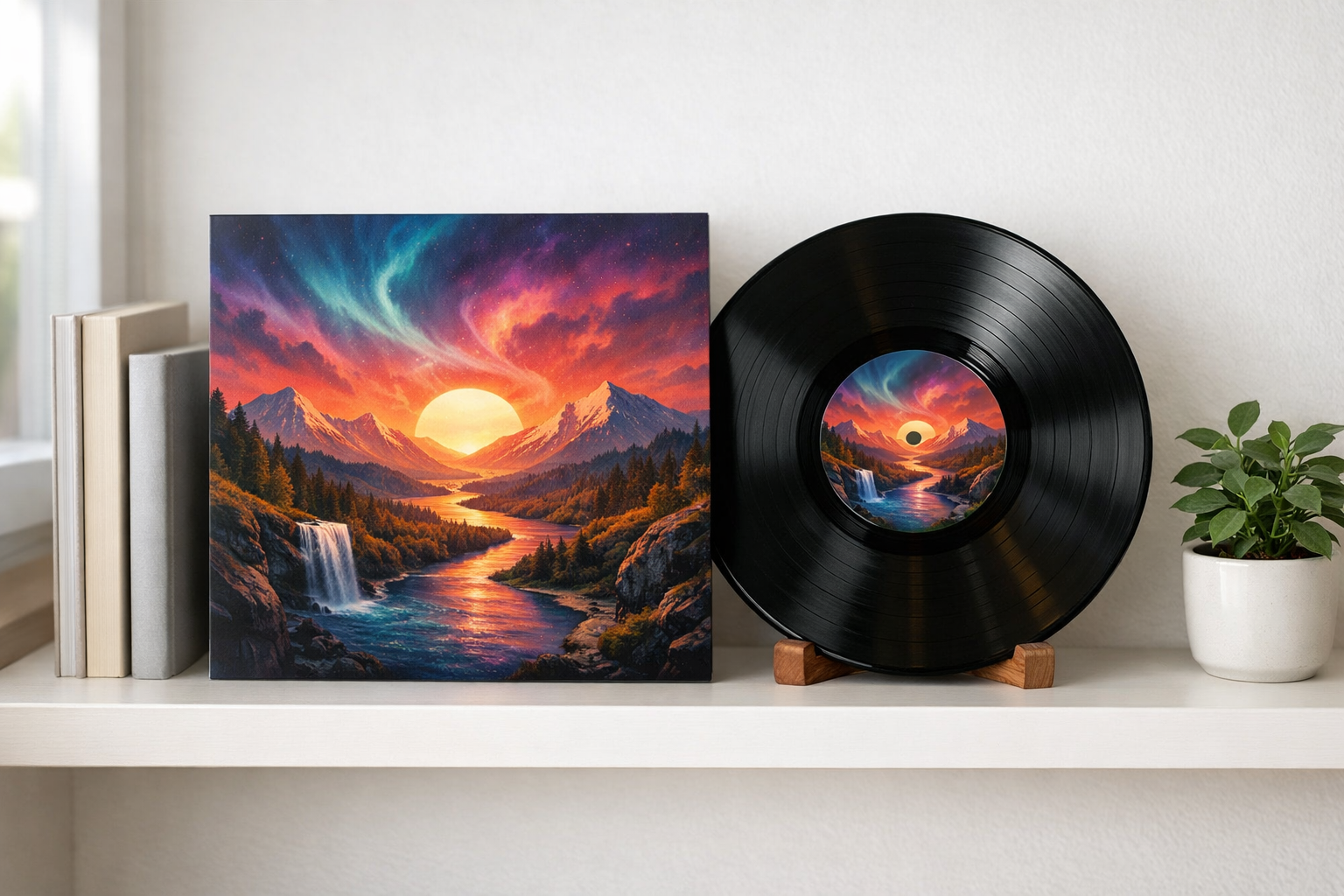 This exact album cover, printed on the center label of your very own vinyl record. A one-of-a-kind keepsake.